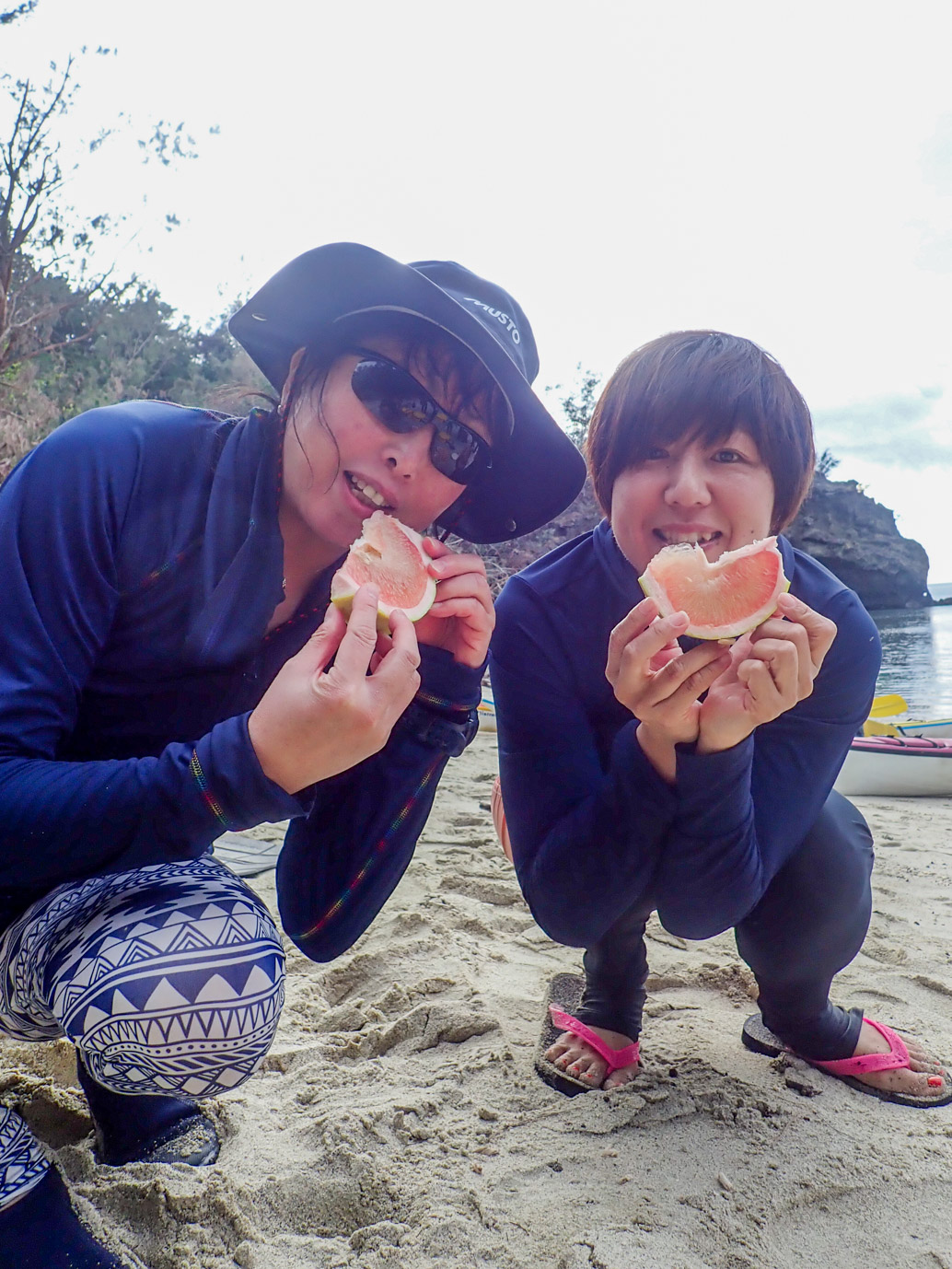 小笠原の冬の果物「ぶんたん」が手に入り、浜辺でみなさまと美味しく頂きました!