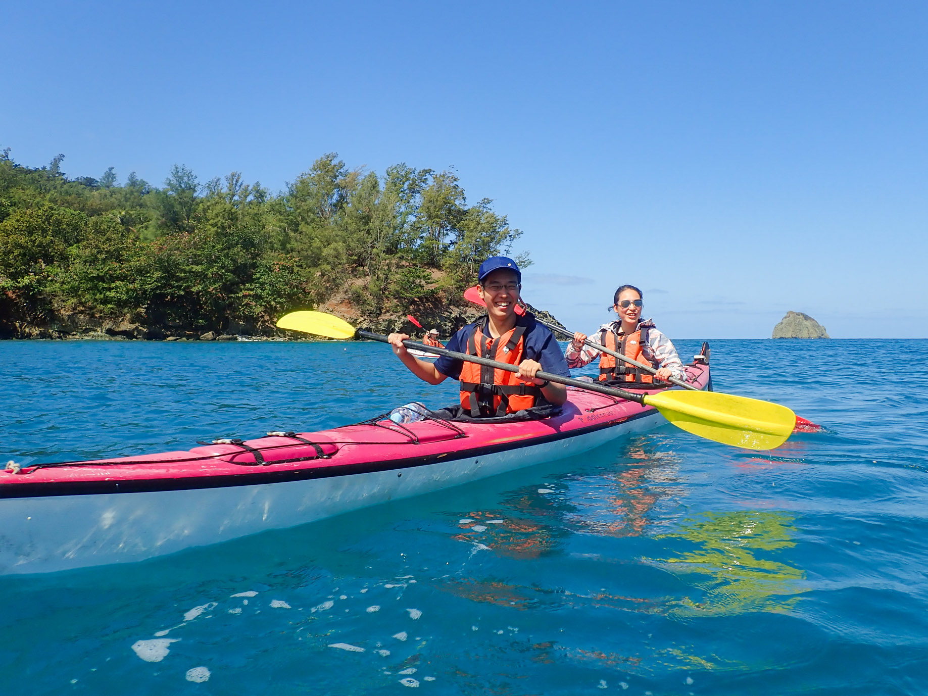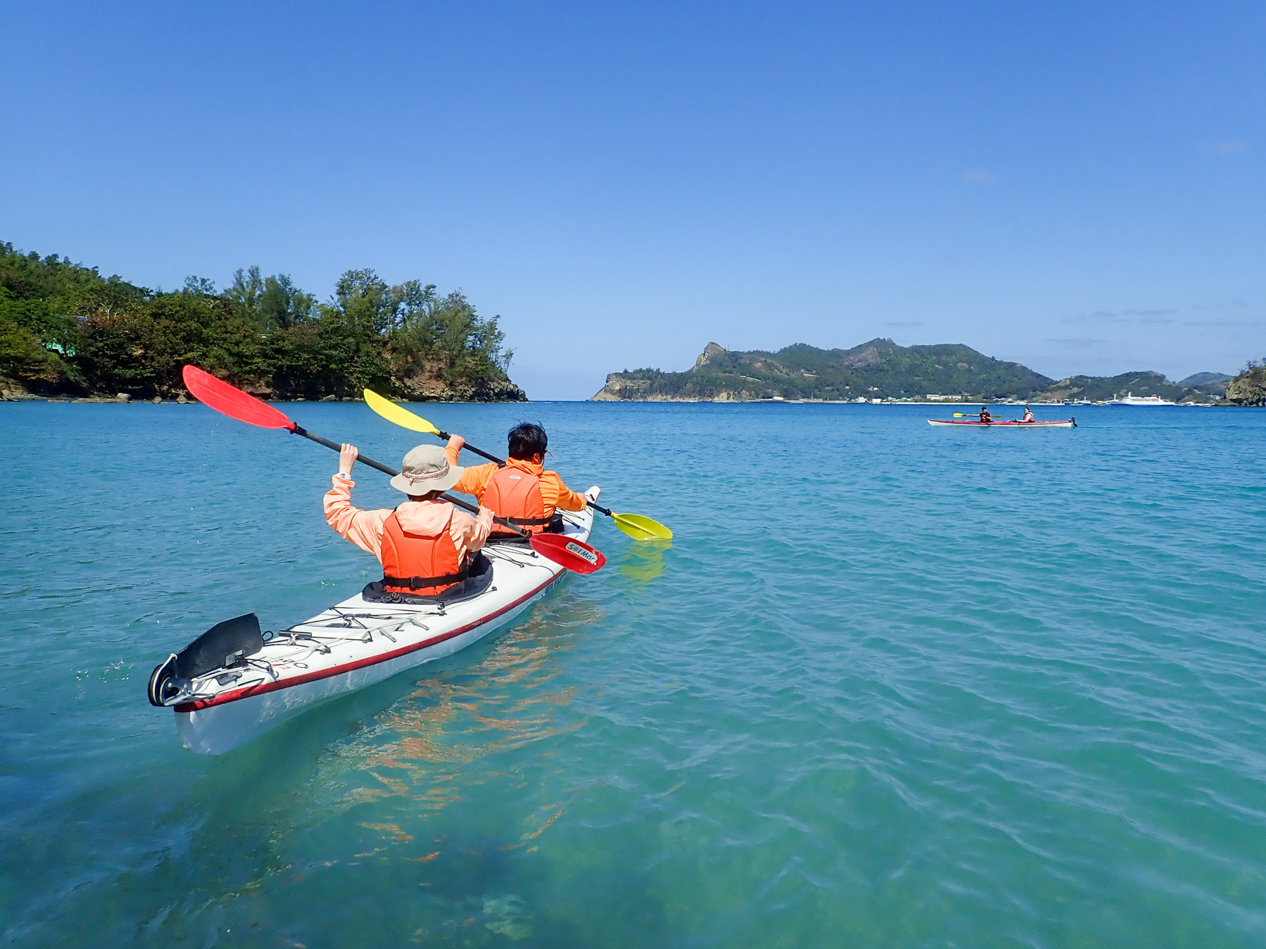 今日は島民&内地からご来島のお客様とともにカヤックへ!